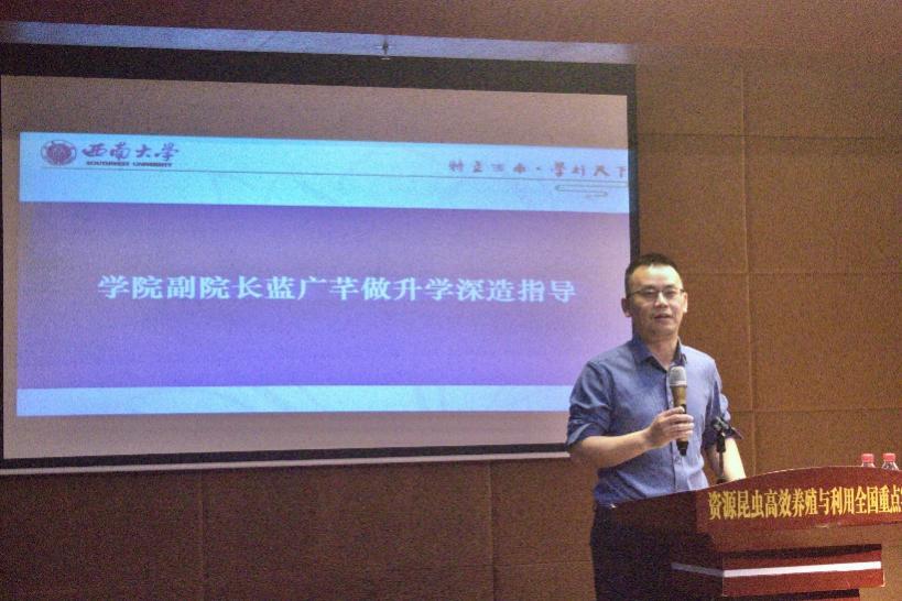 副院长蓝广芊开展升学深造指导,提供考研备考建议。他首先从高等教育划分标准特征介绍当下国内教育规模和情况。接着以升学政策、考研形势、社会需求进行横向分析。最后对升学选择、如何报考、重要事项等方面进行了具体指导。