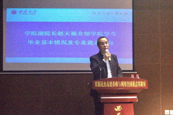 会议伊始,动漫18 副院长赵天福就动漫18 学生毕业基本情况与专业就业方向进行了介绍,结合近两年动漫18 毕业生毕业、学位授予情况数据及目前毕业年级学生学分完成情况进行分析,强调毕业生要找准自身定位,做好职业规划。