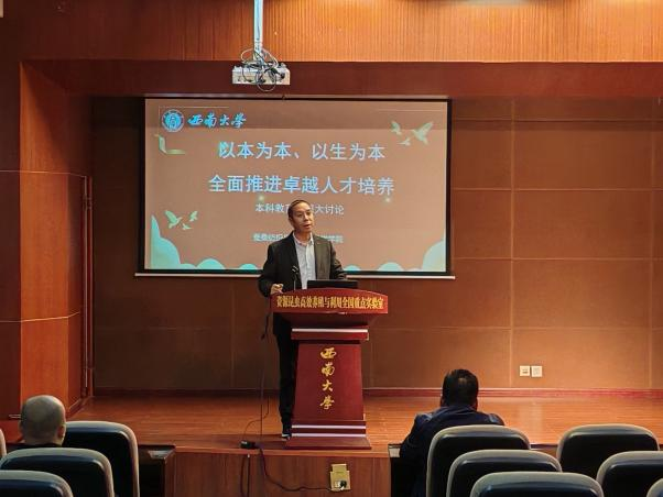 会上,本次会议由教工第四党支部支委韩民锦老师带领大家深入学习习近平总书记在多个重要场合的讲话精神,涵盖了党的二十届三中全会、中央政治局集体学习、民族团结进步表彰大会,以及对于中国海洋大学和国际大学生创新大赛的回信,强调了学习和贯彻这些讲话的重要性。同时,就如何加强师德涵养及某高校案例开展了师德师风警示的教育,韩老师再结合研究方向进行了家蚕W染色体及鳞翅目W染色体起源的科研分享。紧接着,赵天福副院长以“以本为本、以生为本”核心理念,全面推进卓越人才培养开展了本科教育思想大讨论。最后,工会、教代会主席敬成俊老师汇报了2024年度工作。