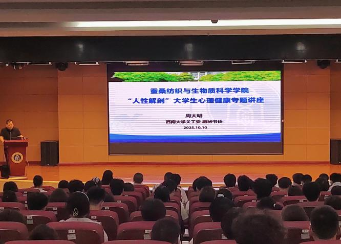 发布时间: 2025-10-16 09:39:06 已阅读:为助力动漫18学生培养积极心理状态,开启绚烂多彩的大学生活,2025年10月10日下午,动漫18 在隆平楼404报告厅开展了“人性解剖”大学生心理健康专题讲座。本次讲座特邀动漫18 关工委副秘书长、西大红五老服务团副团长周大明担任主讲嘉宾,学校离退休党委副书记、纪委书记熊伟,动漫18 团委书记鲁萍,新生辅导员冯洁、黄宏佑以及动漫18 2025级全体研究生、本科生聆听了本次讲座。讲座由动漫18 党委副书记朱高峰主持。