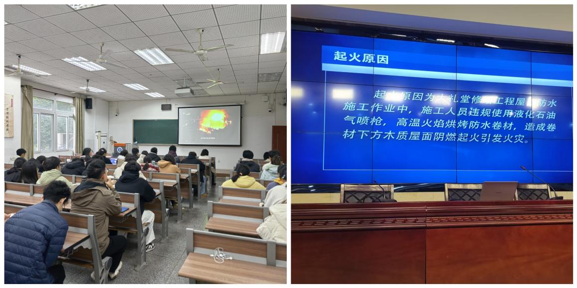 强化消防安全。在理论层面,学院面向本科生、研究生及教师等不同群体,开展了多场消防安全专题宣讲。宣讲会通过播放真实的火灾事故案例视频,深入剖析事故原因与教训,以案为鉴,极大地增强了各层面师生的安全责任意识。