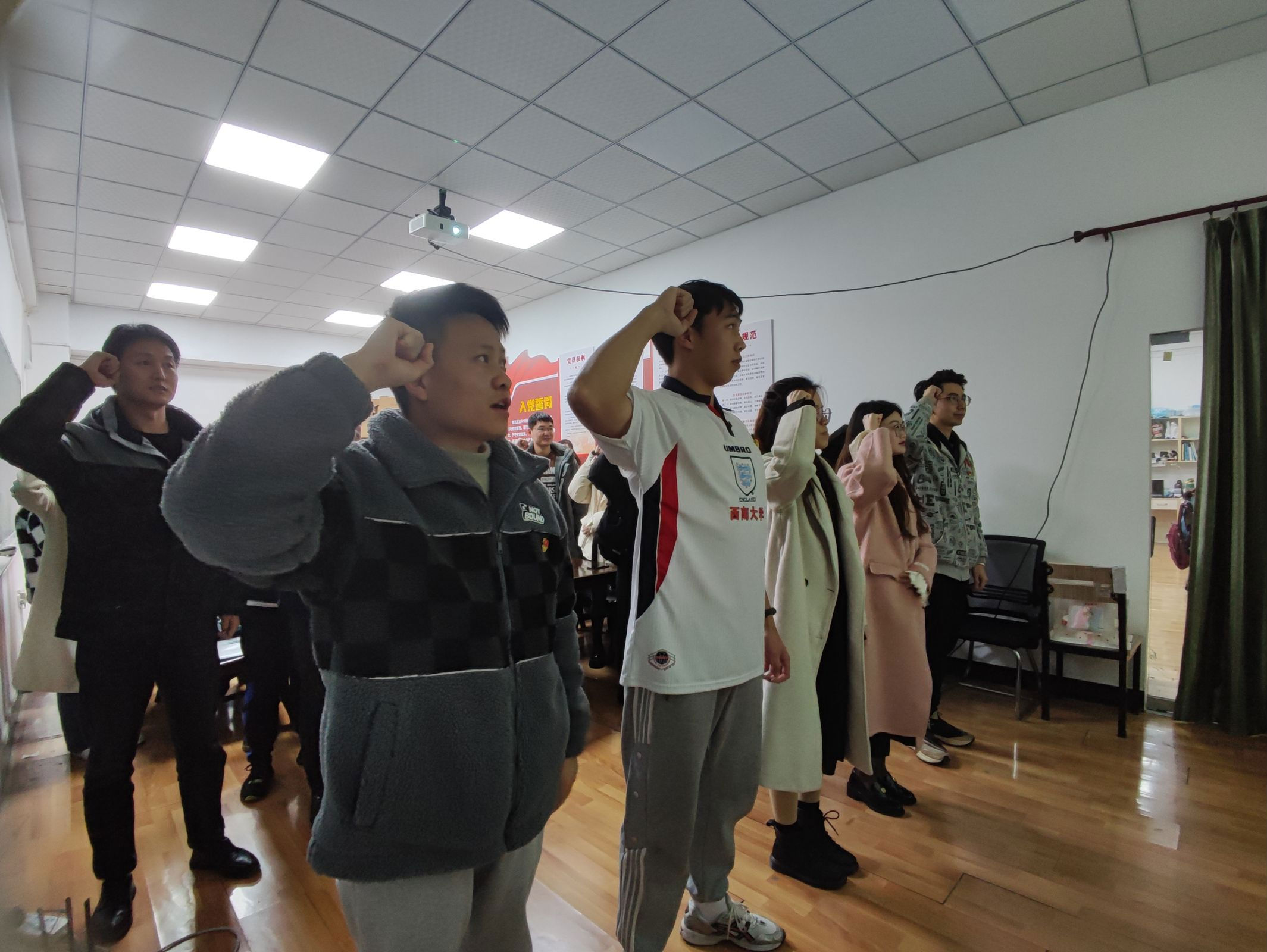 最后,活动在党员集体政治生日和新入党同志的庄严宣誓仪式中圆满结束。党员和入党积极分子们的热情参与使整个党日活动充满了浓厚的学术氛围和团结向上的党建风貌,使党员对宪法精神和法治意识有了更深层次的认识,有效促进了党员们理论学习与实践能力的全面提升。