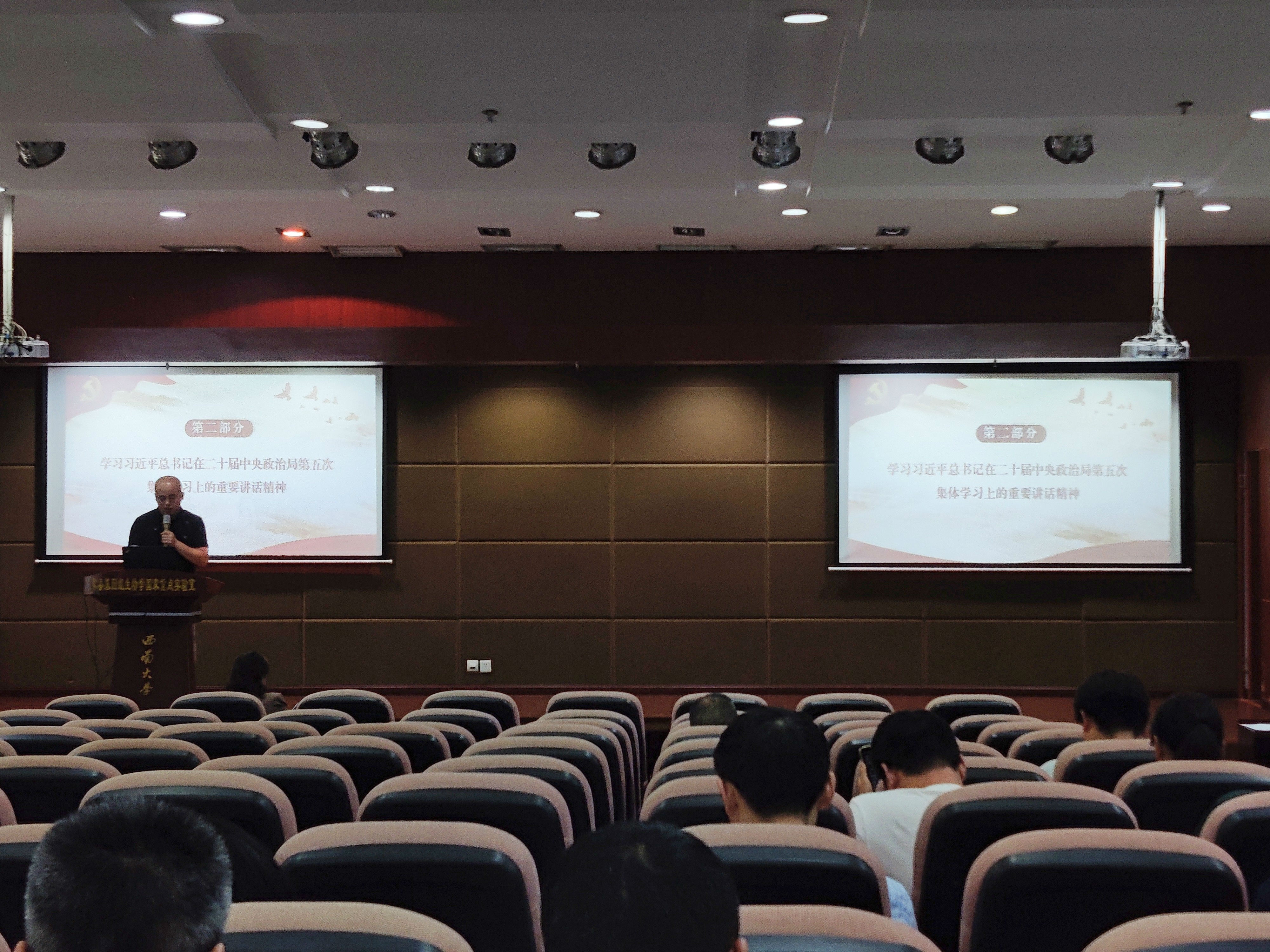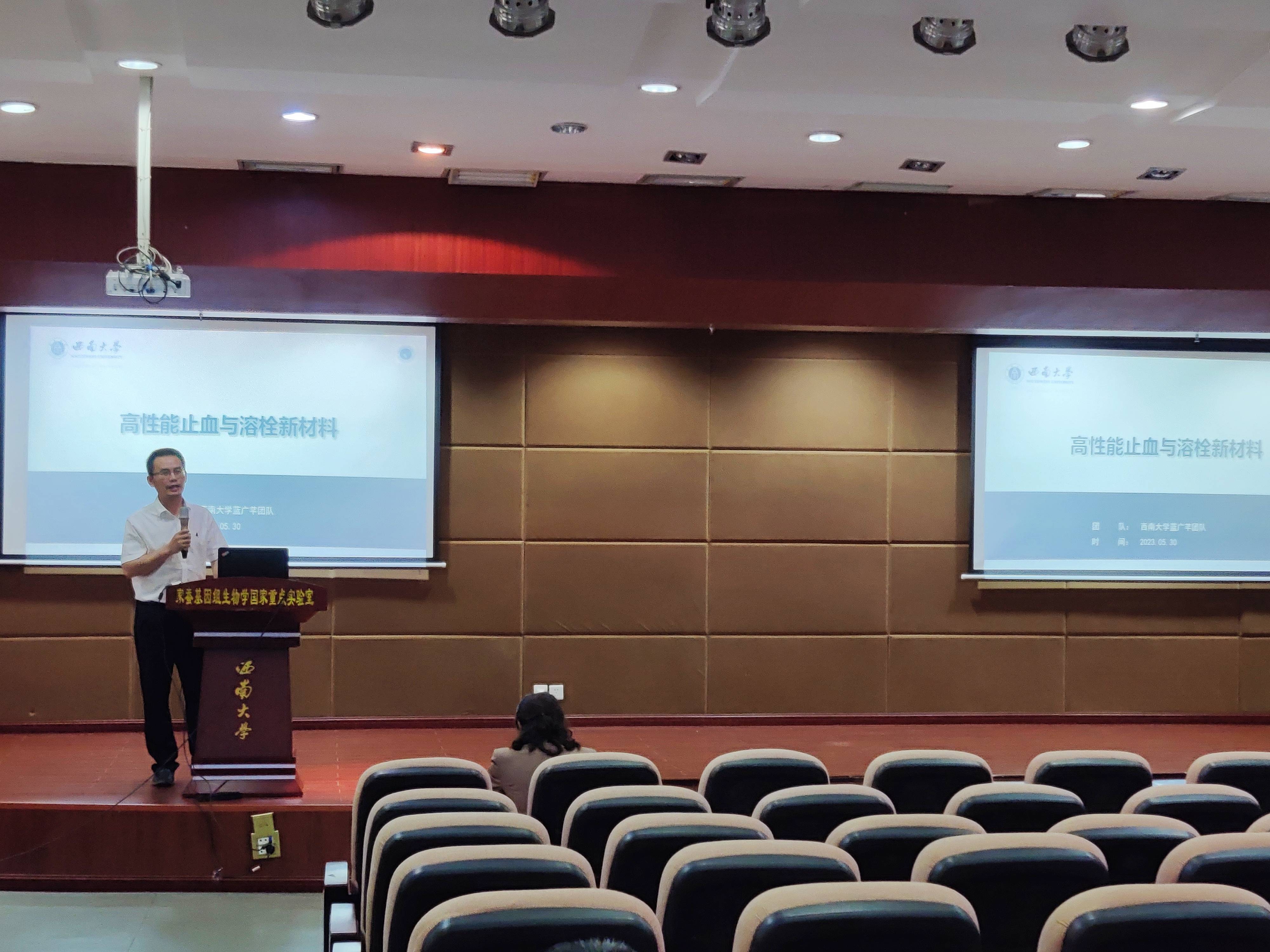 会上,教师第四支部韩民锦副教授领学了“学习贯彻习近平总书记重要讲话精神,深刻领悟“以学增智”重要要求”和习近平总书记在二十届中央政治局第五次集体学习上的重要讲话精神。随后,全体与会人员一起观看了“西大教师故事”短视频,回顾向仲怀院士带领我国蚕业科学研究抢占世界领先地位的奋斗历程。动漫18 副院长、教师第四支部副书记蓝广芊教授介绍了支部基本情况及工作开展情况,分享了止血功能材料科研进展。