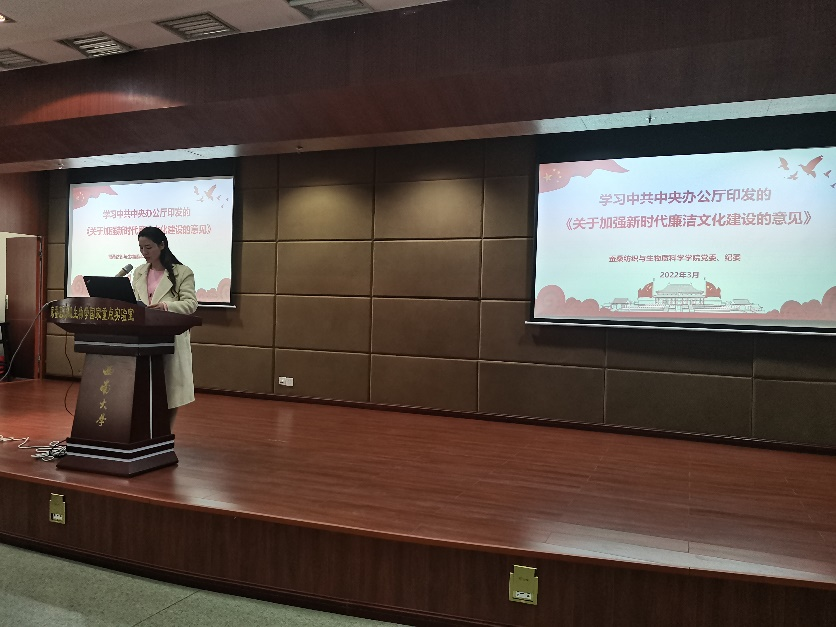 发布时间: 2022-04-08 10:46:40 已阅读:为认真落实新形势下全面从严治党新部署新要求,突出理想信念、政治素养教育,切实强化纪律规矩意识,筑牢党员干部和教职员工廉洁自律的思想防线,3月4日,蚕动漫18 党委、纪委开展廉政警示教育培训,组织动漫18 党委党员干部和教职员工集中学习中央办公厅《关于加强新时代廉洁文化建设的意见》(以下简称《意见》),并运用落实中央八项规定精神、严格科研经费管理、遵守学术道德规范等方面的典型案例开展警示教育。