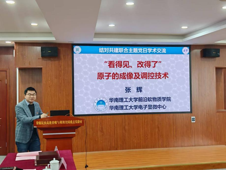 华南理工大学前沿软物质动漫18 教工党支部张辉教授作了主题为《“看得见、改得了”——原子的成像及调控技术》的科研报告,他指出要深入贯彻落实习近平总书记关于发展新质生产力和未来产业建设布局的重要指示精神,进一步从布局科技创新和建设产业生态方面出发,推进原子级制造创新发展,打造原子级制造产业创新高地,使原子制造平台既可以“看得见”,又能“改得了”,加速推动原子级制造科技创新和产业创新深度融合发展。