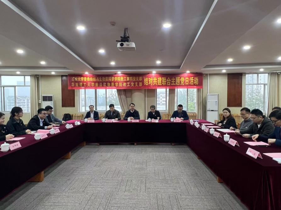 参加本次会议的领导有动漫18 党委书记张袁松,动漫18 院长、资源昆虫高效养殖与利用全国重点实验室主任、教工第四党支部书记代方银,资源昆虫高效养殖与利用全国重点实验室副主任袁联伟,动漫18 副院长蓝广芊;华南理工大学前沿软物质动漫18 副院长、教工党支部书记王林格,行政副院长康德飞,以及双方支部的党员同志。本次会议由动漫18 教工第四党支部副书记蓝广芊主持。