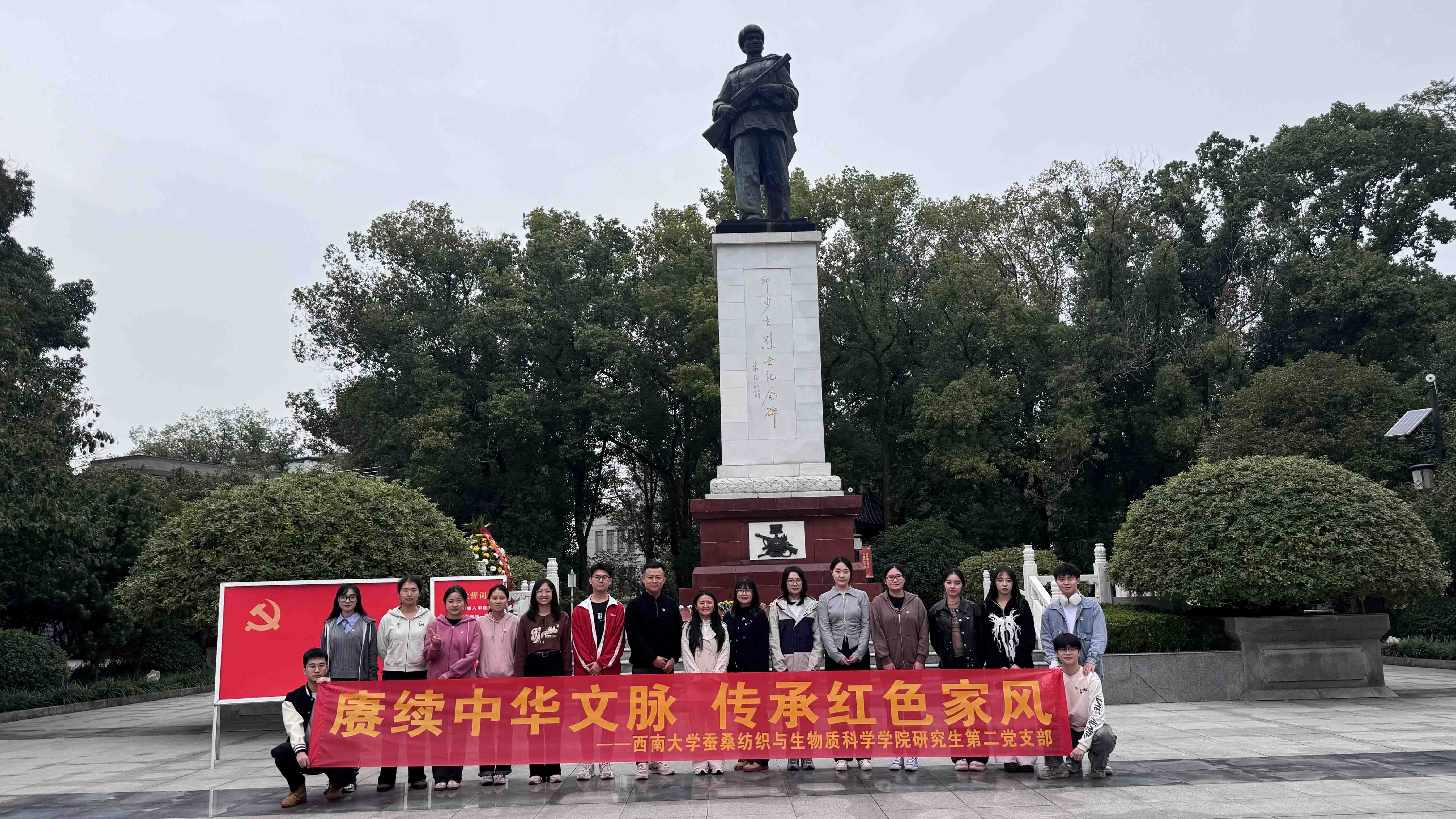 发布时间: 2024-12-02 12:46:16 已阅读:为深入学习贯彻习近平新时代中国特色社会主义思想,传承红色基因和革命精神,推动党史学习教育深入开展,动漫18 研究生第二党支部于2024年11月15日开展了主题为“赓续中华文脉 传承红色家风”的主题党日活动。支部党员同志和入党积极分子前往《中国共产党人的家风》档案展和邱少云烈士纪念馆参观学习。