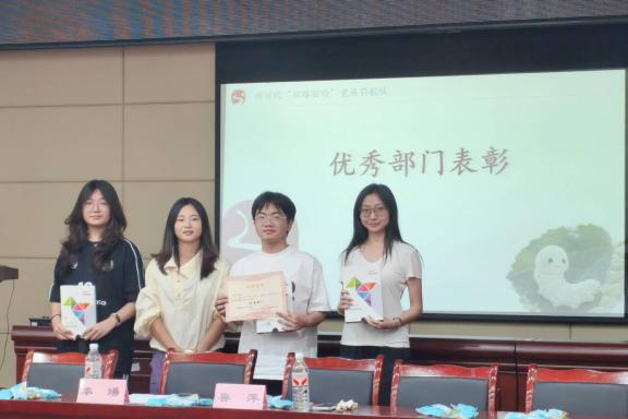 秦瑒老师在讲话中肯定了队员们的工作,并鼓励大家以优秀队员为榜样,把引航队当作成长的沃土、进步的阶梯,在这里实现自我价值,绽放青春光彩,希望队员们传承引航精神,践行担当。随后,秦瑒老师和鲁萍老师共同为第七届优秀队员和集体颁奖。