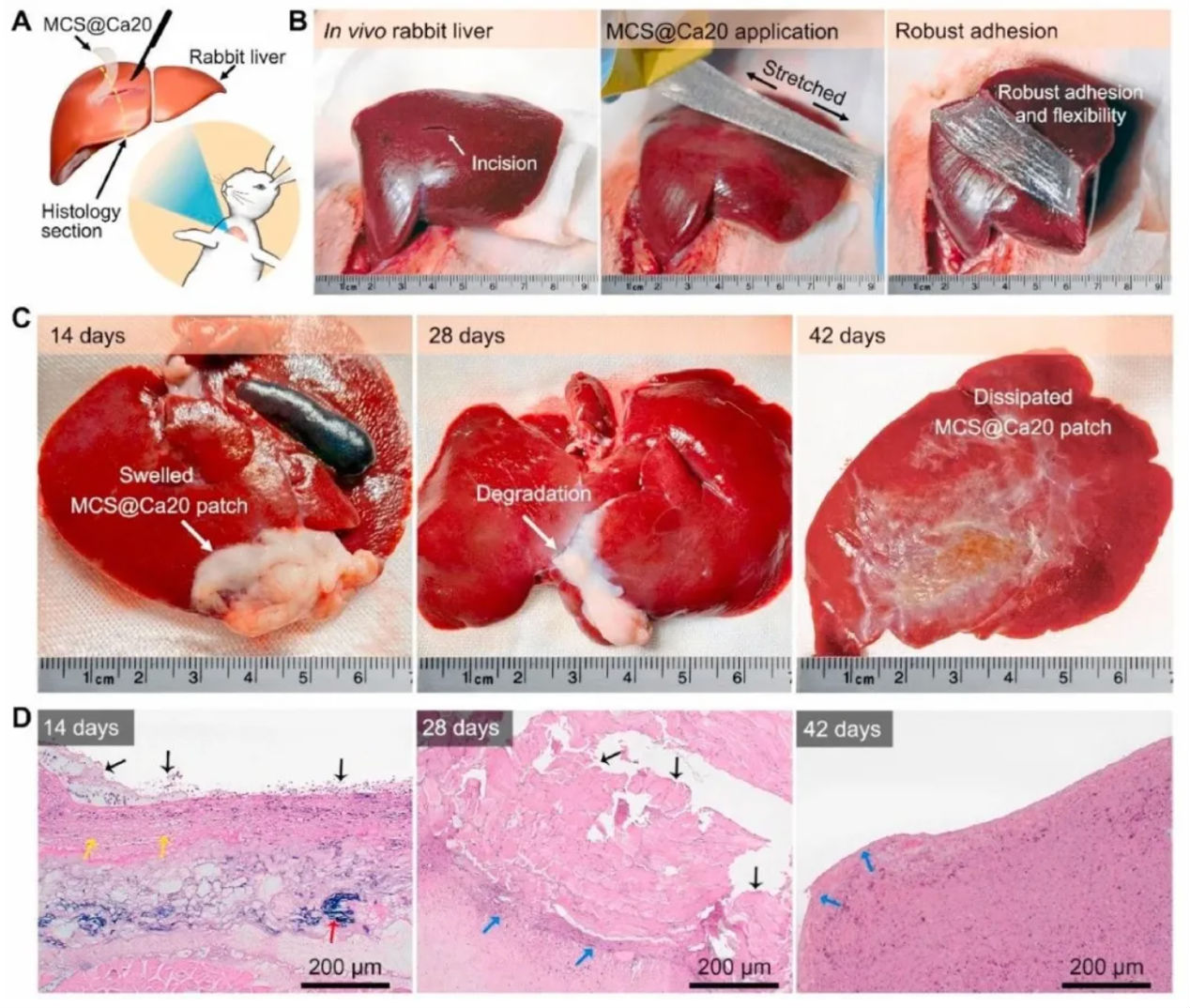 图4 蚕丝蛋白生物胶带MCS@Ca20对肝损伤模型的修复