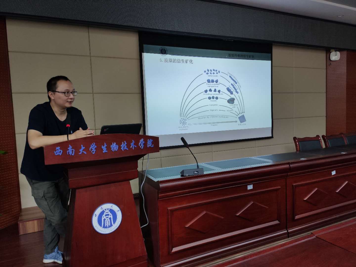 接下来,段炼老师介绍了生物体内胶原纤维矿化成骨的机理以及体外胶原仿生矿化的方法和应用,展示了访学期间精彩的工作与生活照片,并耐心地回答了同学们的提问。