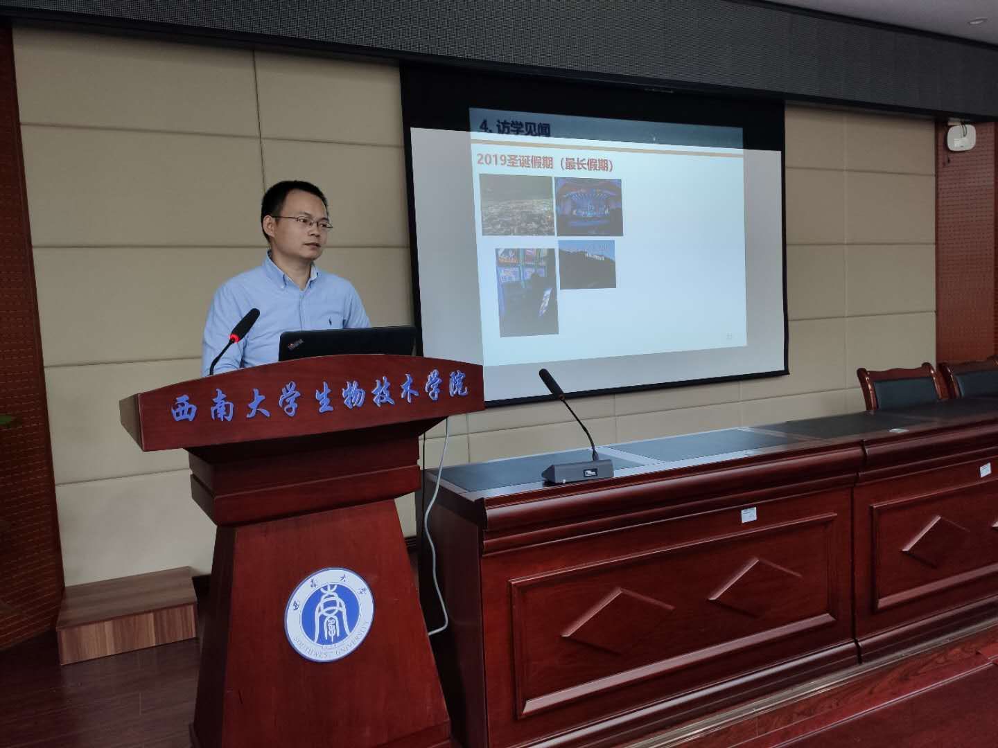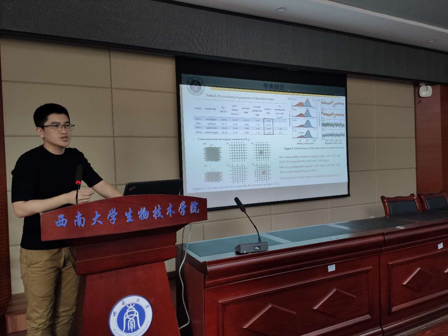本次学术交流会动漫18共约100名师生参加,会上肖波老师首先作了美国乔治亚州立大学访学报告——茶叶衍生纳米粒子在结肠疾病治疗中的应用。