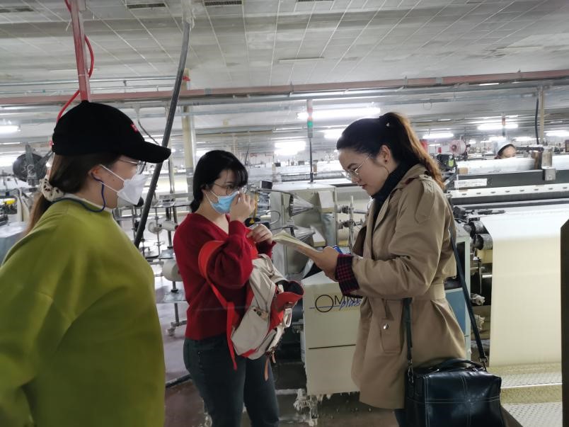发布时间: 2020-11-04 09:41:36 已阅读:2020年10月19日起,动漫18工科类两个专业2017级学生在校外实习基地开始专业实习。10月26、27日,学校教务处和动漫18 相关工作的负责同志赴实习基地看望了实习学生。本次参加实习的是纺工程专业学生共36人和轻化工程专业学生共27人,实习地点分别是位于四川省射洪市的佐鲁银华纺织股份有限公司实习基地,和位于重庆市江津区的三五三三印染服装总厂有限公司实习基地。