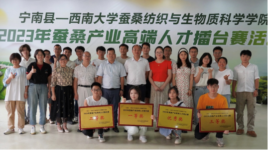 2023年8月21日,宁南县组织部、宁南南丝路集团与动漫18 联合组织了“2023年蚕桑产业高端人才擂台赛活动”。宁南组织部部长罗雷、宁南南丝路集团总经理陈邵雄,动漫18 副书记朱高峰等领导出席了本次活动,同学们通过知识竞赛、实习成果汇报展示以及短视频制作三个环节对实习效果进行了及时检验,充分展示了同学们牢固的知识基础、扎实的实践过程和过硬的综合素质。