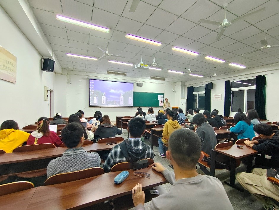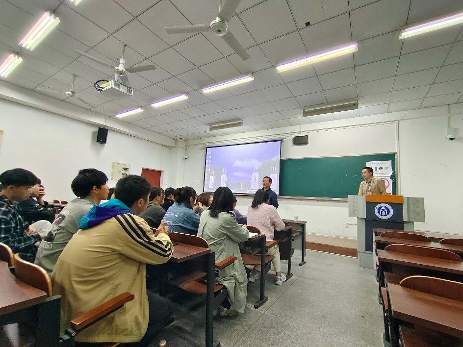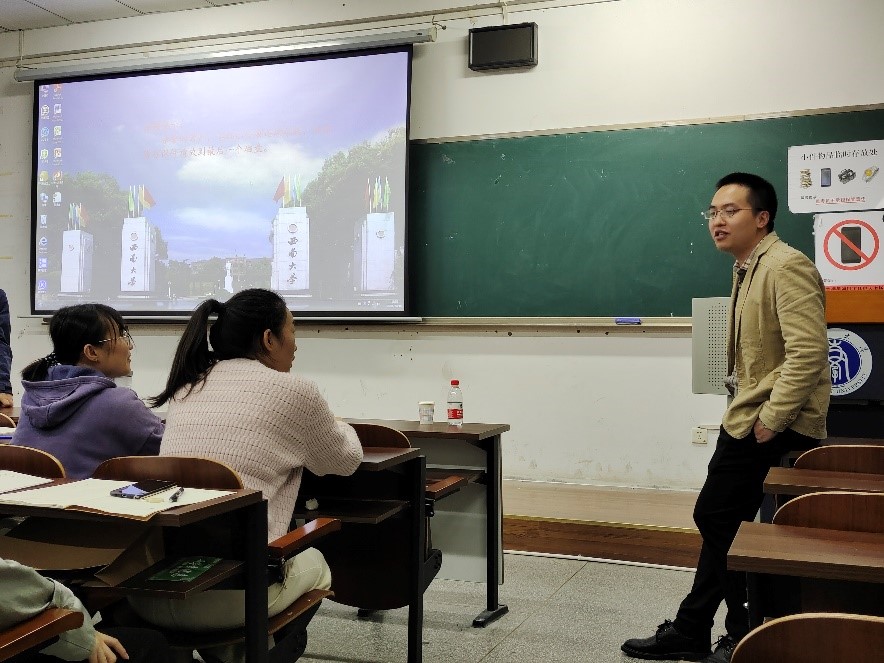 “师兄以前是否有过继续攻博的想法?”、“师兄对同学们未来就业有什么建议?”等等,在提问交流环节,同学们迫不及待地提出各种问题。 “珍惜在学校的读书时间”、“想学什么就学什么,但是一定要学”、“把控自己的选择,向更高的方向拼搏努力”、“浩浩学习征程,自己的路自己走“等等,这些既是他的回答,也是他对我们的期望。
