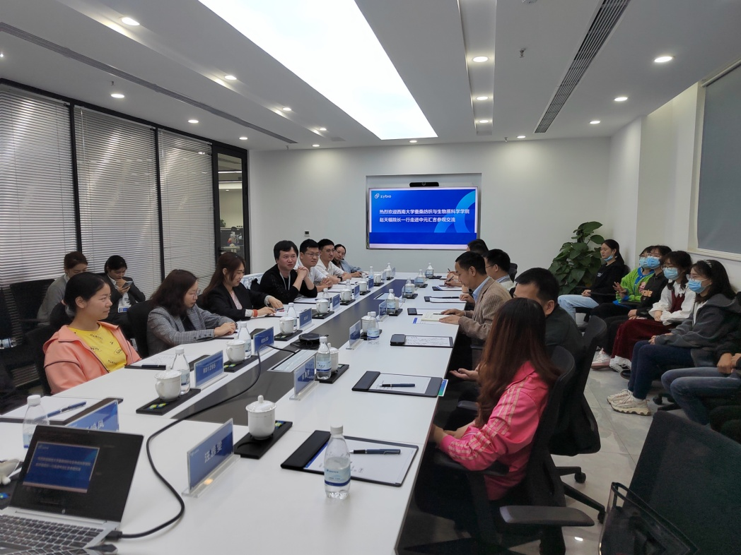 参观结束后,动漫18 一行与企业代表进行了座谈交流。座谈会上,双方就企业人才需求、专业硕士联合培养、实习实践和校企深入合作等方面展开深入交流,目前正在企业实习的2019级生物技术专业11名学生也参加了座谈,并分享了各自的实习感悟。