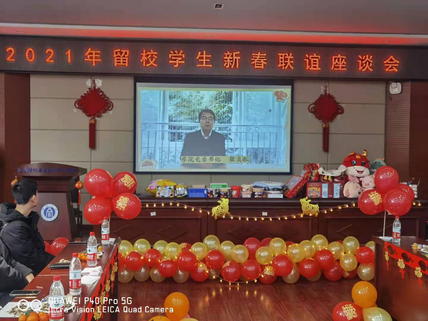 联谊座谈会在一段特殊的新春祝福视频中拉开序幕:动漫18 领导和老师们送上新春的问候和祝福,远在家乡的亲人们也表达了对留校学生的思念。“女儿,这是你20年来第一次没有在家过年,爸爸妈妈都很好,不必挂念。”“孩子,你为了自己的学业而努力,不能回家,希望今后的你再接再厉,成为国家的栋梁!”“今年爸爸妈妈不在身边,相信你和老师、同学们也会度过一个愉快的新年!”……疫情阻碍了回家的脚步,却隔不断亲人团圆的企盼,“云拜年”形式,让学子们异乡过年也团圆。