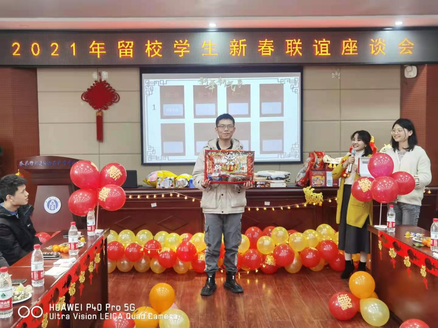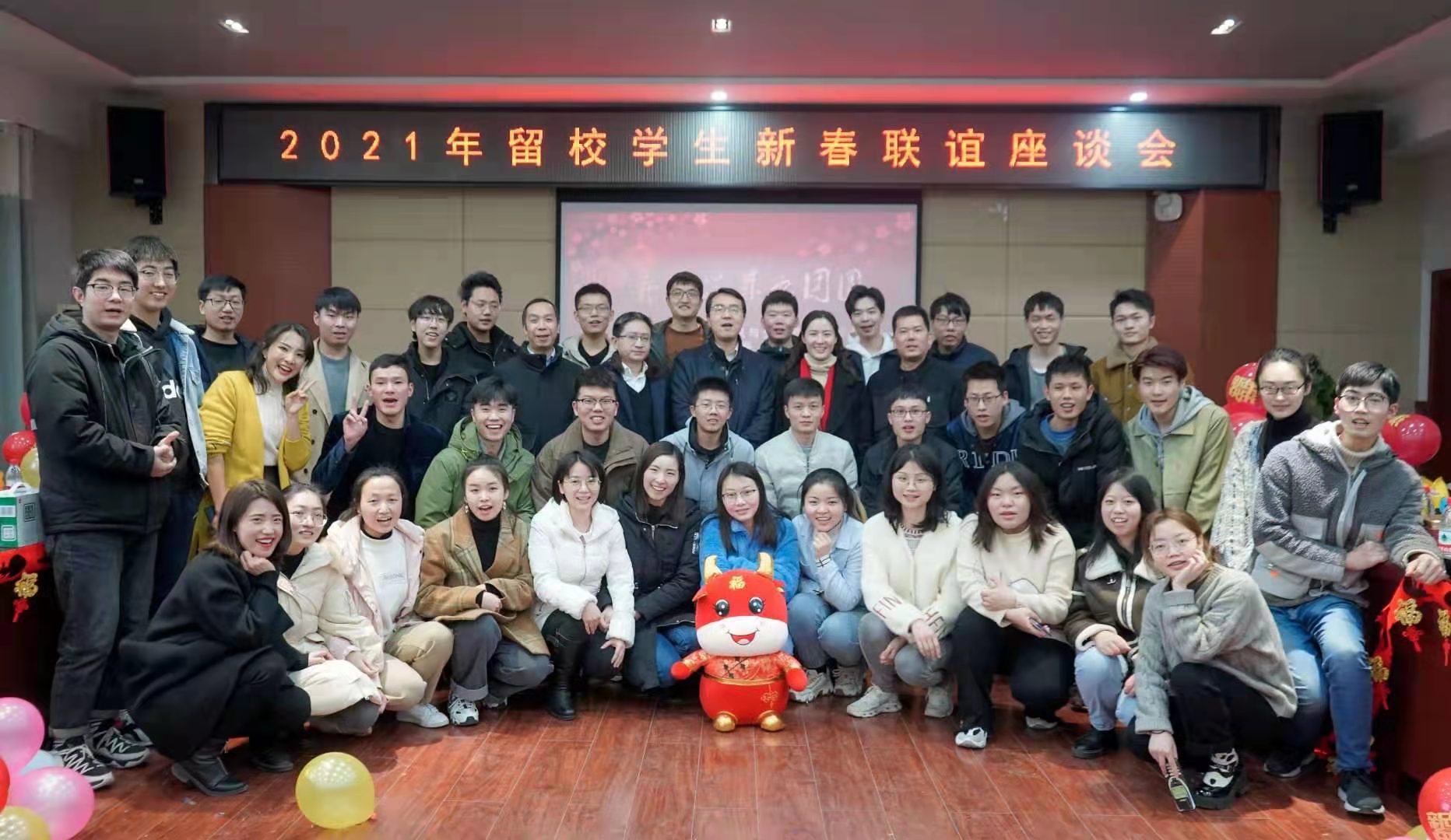 发布时间: 2021-02-10 20:28:09 已阅读:玉鼠辞旧岁,金牛迎新春。2月9日下午,蚕动漫18 寒假留校学生新春联谊座谈会在33教306会议室顺利举行,院党委书记张袁松,院长代方银,副书记曾鸣鸣、朱高峰,副院长赵天福,辅导员代表及研究生、本科生留校学生共40余人欢聚一堂,共庆新春佳节。活动由动漫18 团委书记娄霞主持。