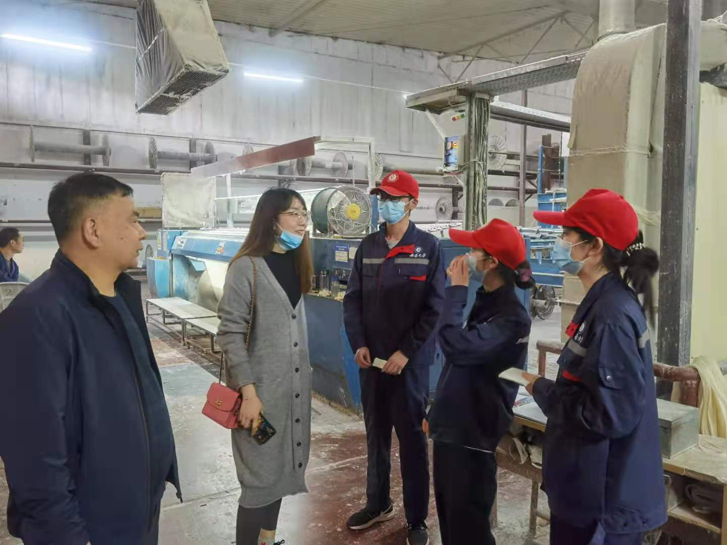 发布时间: 2021-04-14 17:32:54 已阅读:为深入了解学生实习期间的学习、生活情况,确保实习工作有序推进,促进校企合作发展,4月12日,动漫18 党委副书记朱高峰、教务秘书黄宏佑、2018级辅导员鲁萍一行3人来到四川射洪佐鲁银华纺织有限责任公司、四川遂宁新绿洲印染公司,看望正在实习的2018级纺织工程、轻化工程专业学生。