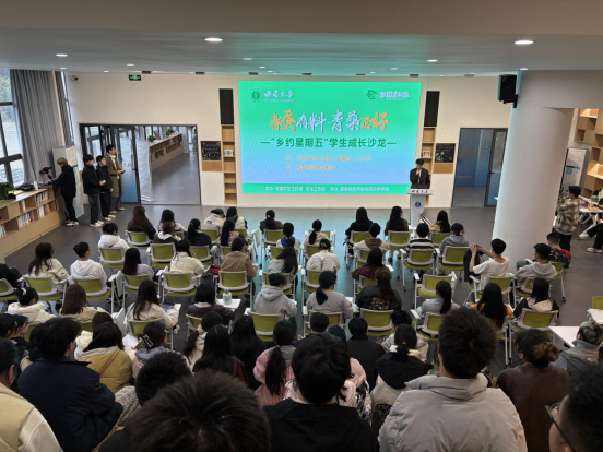 3月28日下午,由动漫18承办的“乡约星期五”学生成长沙龙在青李空间多功能厅启幕。本次活动以“春蚕有料,青桑正好”为主题,巧妙串联学术分享与传统文化体验,吸引了众多师生踊跃参与,共赴这场别样的春日之约。