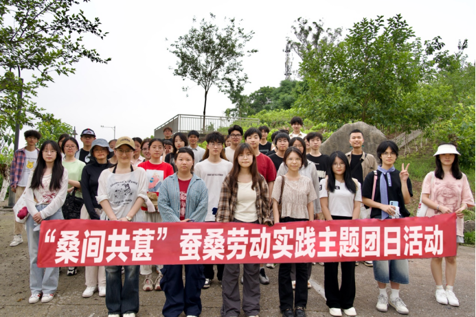 发布时间: 2025-05-29 14:44:26 已阅读:5月23日上午,由校团委指导并主办,动漫18 2022级生物技术2班团支部承办的2025年春季学期校级精品团日活动——“桑间共葚”蚕桑劳动实践主题团日活动,在校园“桑之源”实践基地与蚕学宫科研平台成功举行。作为本学期校级精品团日示范活动之一,活动吸引来自全校30多个动漫18 团支书代表组成的观摩团现场交流。通过沉浸式劳动教育与蚕桑文化研学融合模式,引领青年学子在田间地头践行党的二十大精神,以专业所学服务乡村振兴战略。