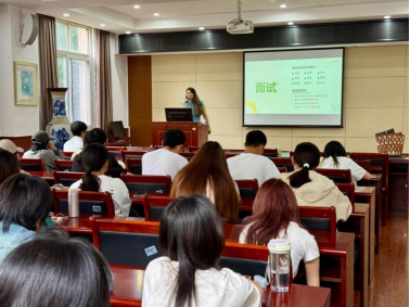 在面试指导环节,余老师全面介绍了面试前的准备工作,包括资料整理、企业调研、心态调整与着装礼仪等,并针对“你的优缺点是什么”“未来职业规划”“如何看待加班”等常见问题,提供了具体应答策略与范例。她提醒同学们,面试是双向沟通的过程,鼓励大家在展示自我的同时,也要积极了解企业,做到知己知彼、从容应对。
