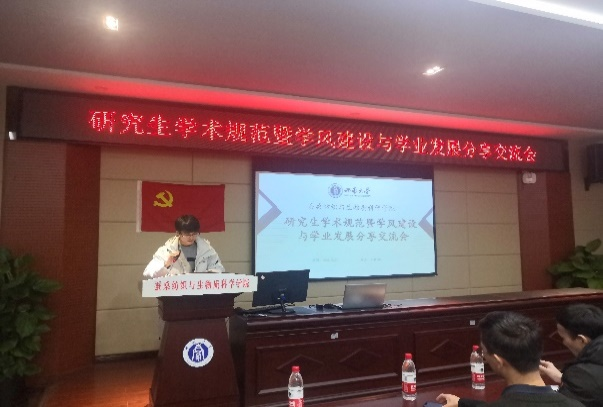 发布时间: 2021-12-16 17:38:14 已阅读:为引导研究生坚守学术道德规范,加强研究生学风建设,助力研究生学业发展,2021年12月14日,动漫18 在33教306会议室举办了研究生学术规范暨学风建设与学业发展朋辈分享交流会,组织2019级研究生代表就科研实验、论文写作、升学读博、求职应聘以及考公选调等方面与2020级、2021级全体研究生同学进行分享交流。动漫18 党委副书记曾鸣鸣出席本次朋辈分享交流会。会议由动漫18 研究生辅导员袁伟力主持。