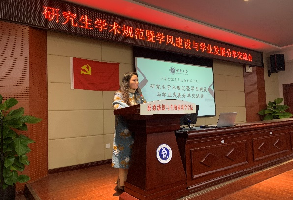 活动伊始,曾鸣鸣副书记介绍动漫18 组织本次活动的背景和目的,并从活动主题切入,向同学们详细阐释了学术道德规范、学风建设以及学业发展的深刻内涵并提出要求和希望。曾书记强调学术道德规范是科研工作者必须坚守的底线和红线,通过典型案例警醒同学们一定要坚守学术道德,指出研究生同学是良好学风的营造者,也是受益者,希望同学们保持端正的学习态度,树立崇高的价值追求,将学术科研与国家战略紧密结合,敢于探索和实践,创新开展科学研究,将学术道德规范和优良学风践行到自己的每一个学习环节,脚踏实地,不负韶华,以梦为马,学有所成。
